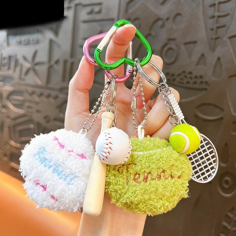 Plush doll pendant, keychain tennis racket pendant, small mini tennis souvenir, bag pendant, small gift.