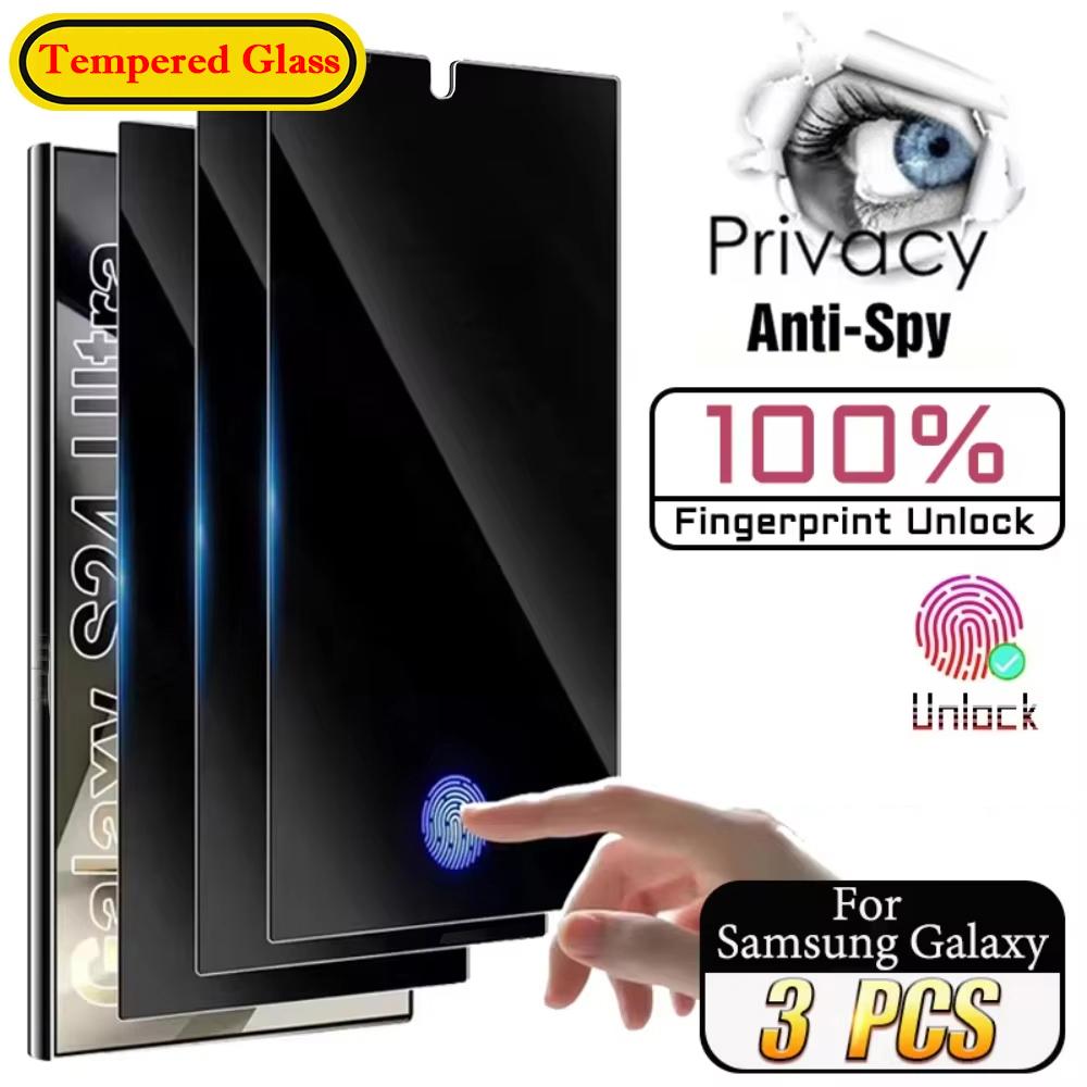 3pcs Fingerprint Unlocking Privacy Tempered Glass For Samsung Galaxy S26 S25 Edge S24 Ultra S23 S22 S21 Plus Note20 5G Anti Spy Screen Protector