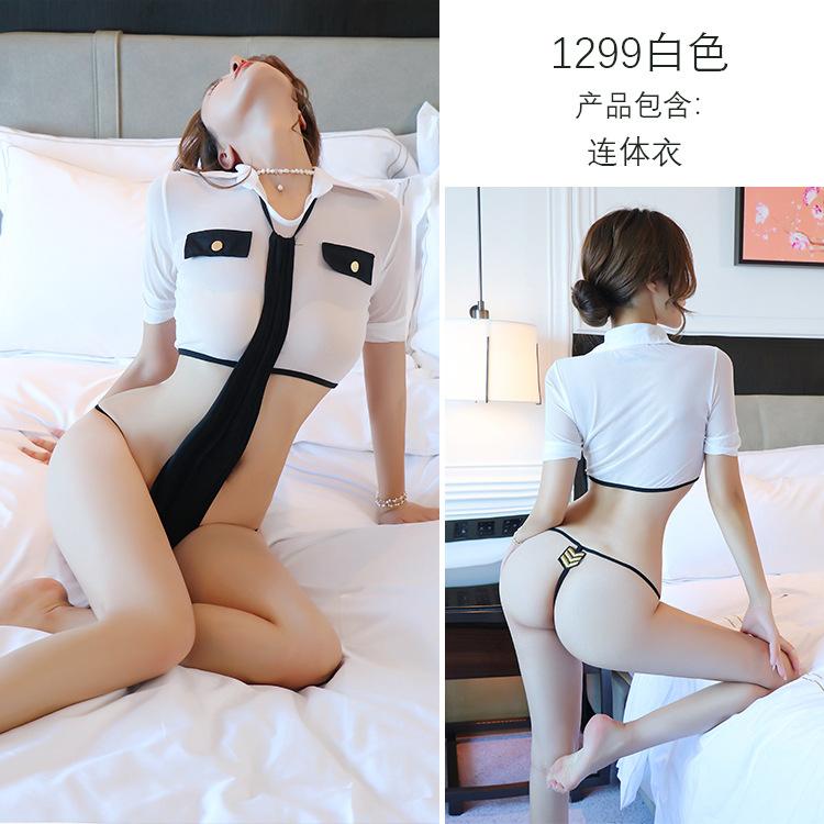 Sexy lingerie women's one-piece hot police uniform suit sexy perspective passion