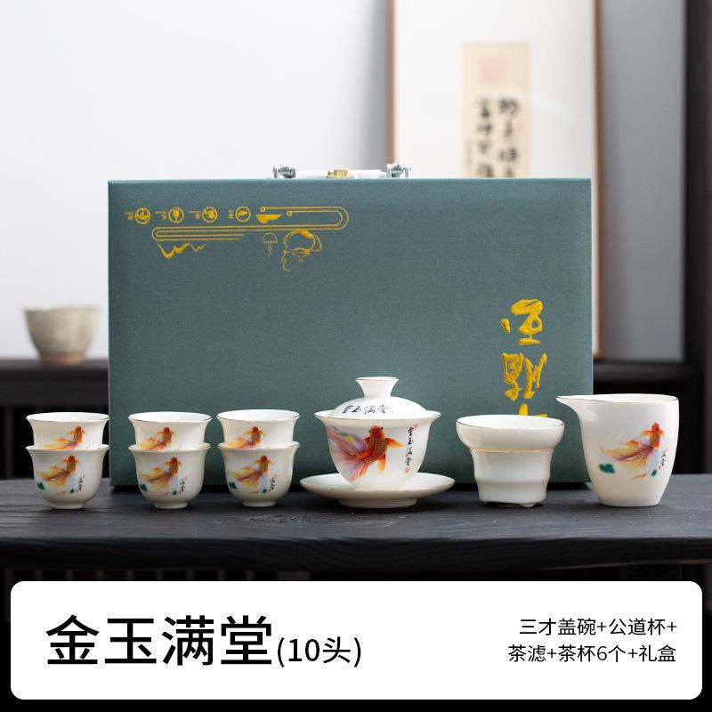 Company Annual Meeting Opening Dehua Sheep Fat Jade Porcelain Tea Premium Gift Box Complete Set