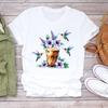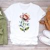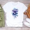 (Asian Size) Printed watercolor flower style Women Tee Lady Female Clothing T Shirt Casual Fashion Top Graphic Short Sleeve T-shirts