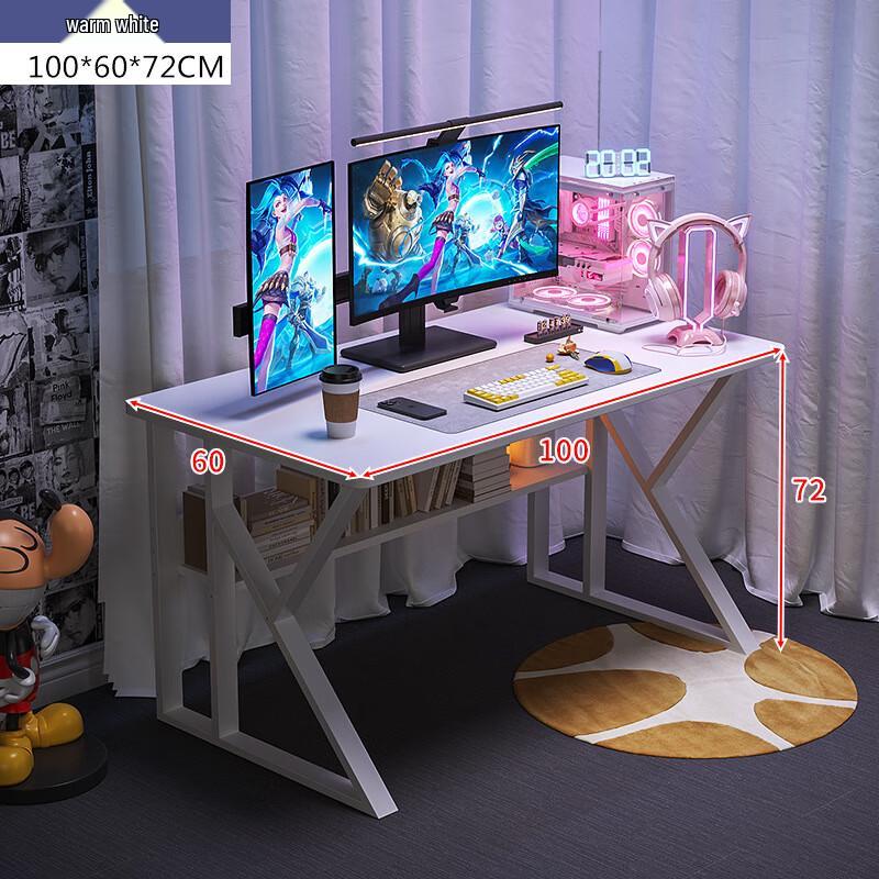 Shengbei Warm White Gaming Desk with Monitor Shelf