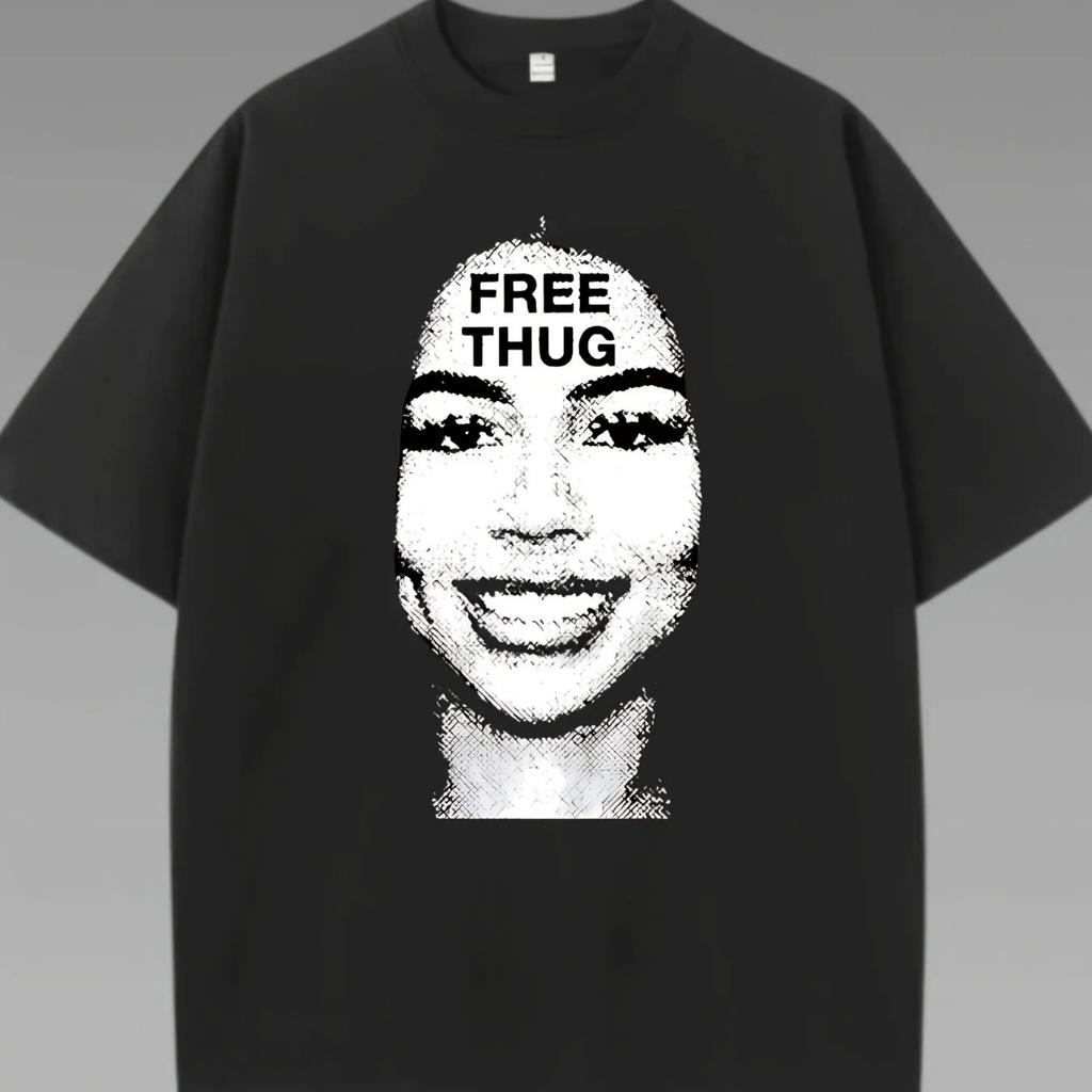 FREE THUG English characters and ladies' head patterns printed women's T-shirts daily summer women's T-shirts