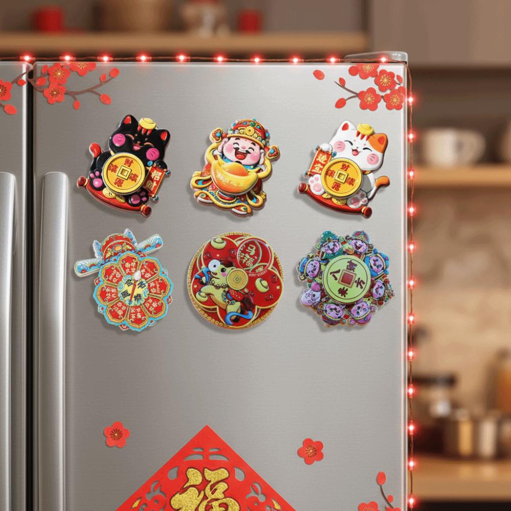 Rotatable New Year Magnetic Sticker God of Wealth Reusable 3D Refrigerator Magnets Cute Cartoon Refrigerator Decorative Magnet