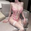Sexy underwear women's pink leopard print bunny onesie hollow uniform temptation open hot passion