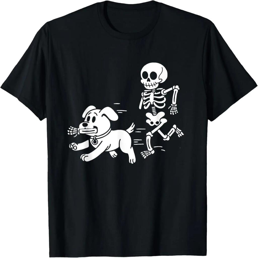 Funny Skeleton and Dog Halloween Humor funny skull men women T-Shirt