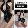Sex underwear PU patent leather and lace onesie pure desire to seduce women's three-point perspective