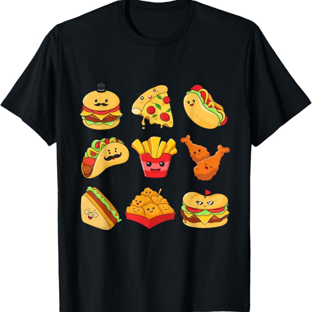 Junk Food Cartoons Fried Food Pizza Chicken Nuggets Tacos T-Shirt