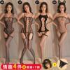Transparent lingerie open gear radical perspective temptation women's one-piece netwear uniform black stockings