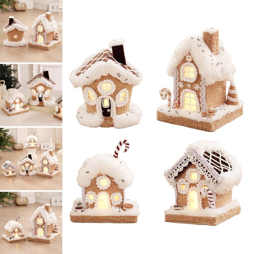 Lighted Gingerbread Christmas Village House with LED Lights Foam Fabric Table Centerpiece Ornament for Holiday Home Decorations
