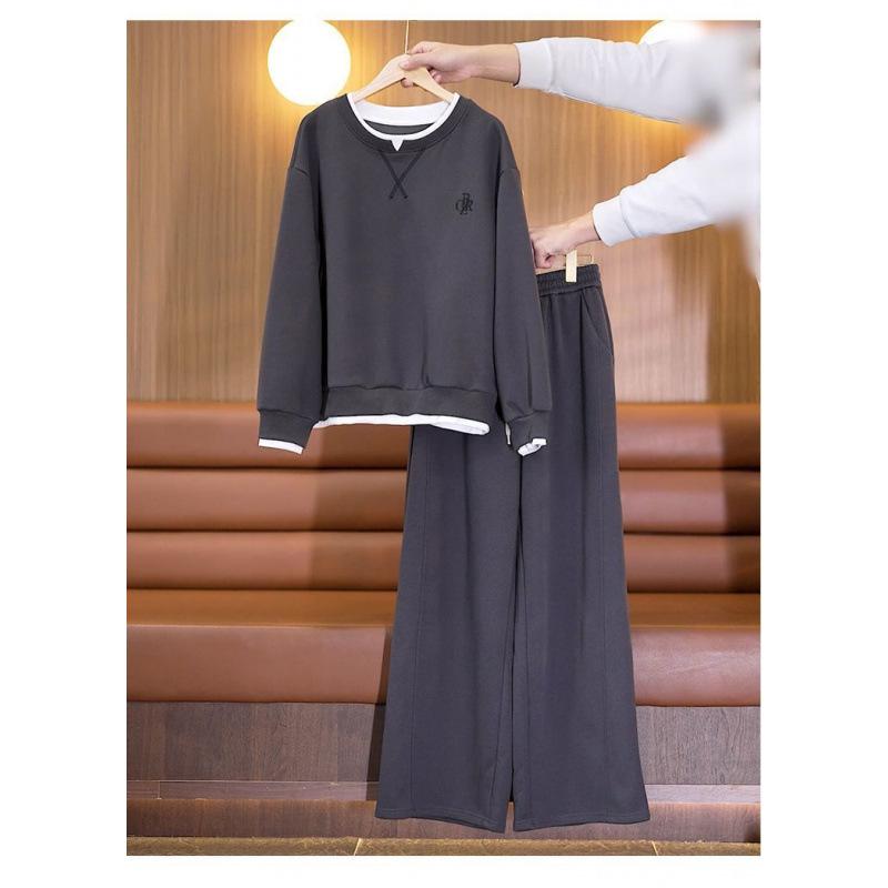 Large Size Spring and Autumn Fashion Suit, Western Casual Two-piece Sports Splicing Sweatshirt Fake Two-piece Set