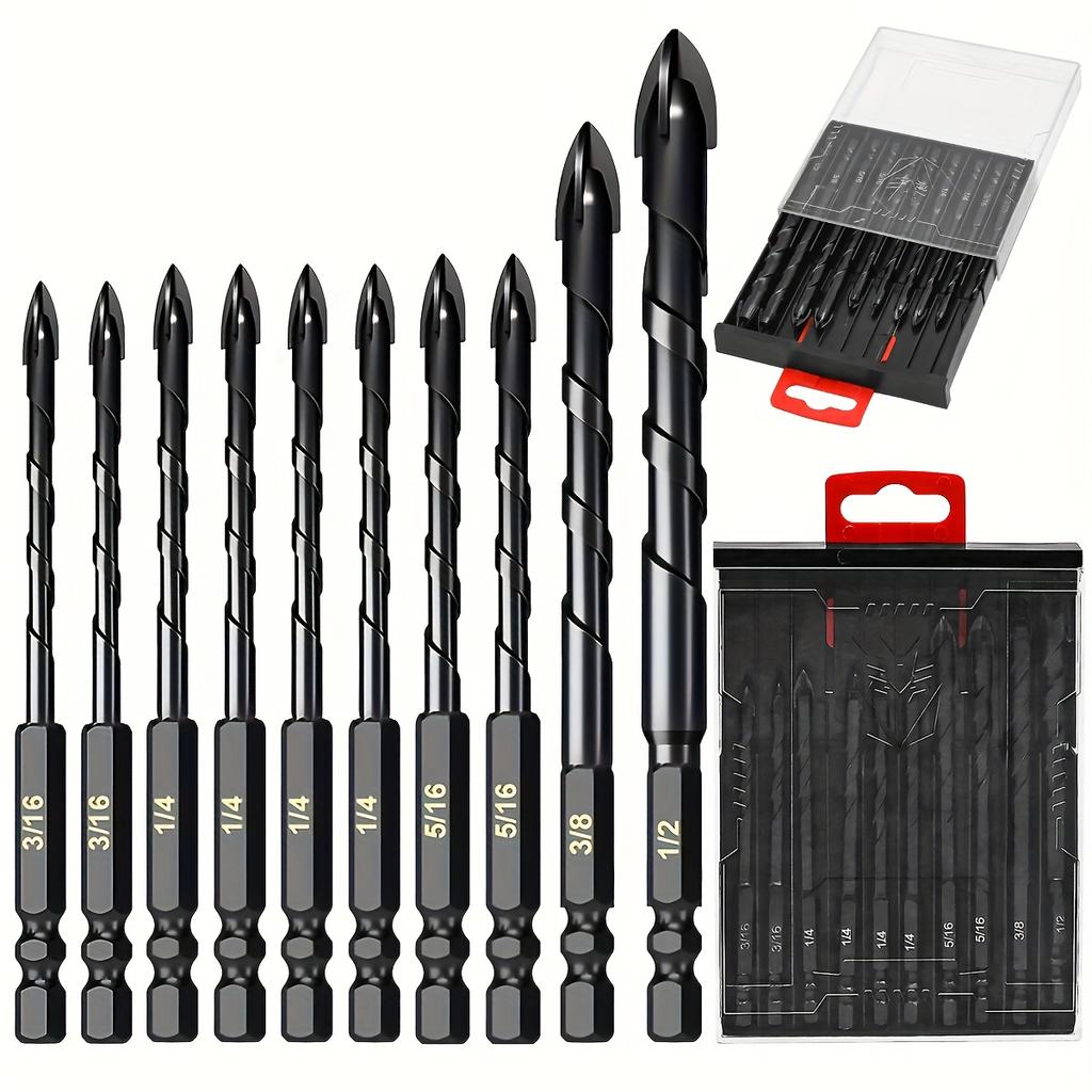 3/16”-1/2 Concrete Drill Bit Set 10PC, Masonry Drill Bits for Brick, Glass, Plastic and Wood, Tungsten Carbide Tip