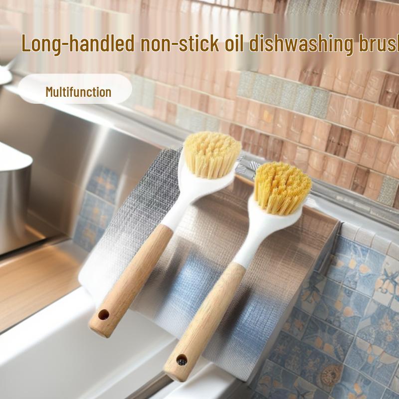 Wooden Long Handle Dish Brush - Multifunctional Non-Stick Oil Cleaning Brush