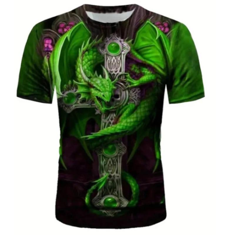 Men's 3D Printed T-Shirt Vintage Dragon Pattern Print Short Sleeve O-Neck Pullover Casual Top