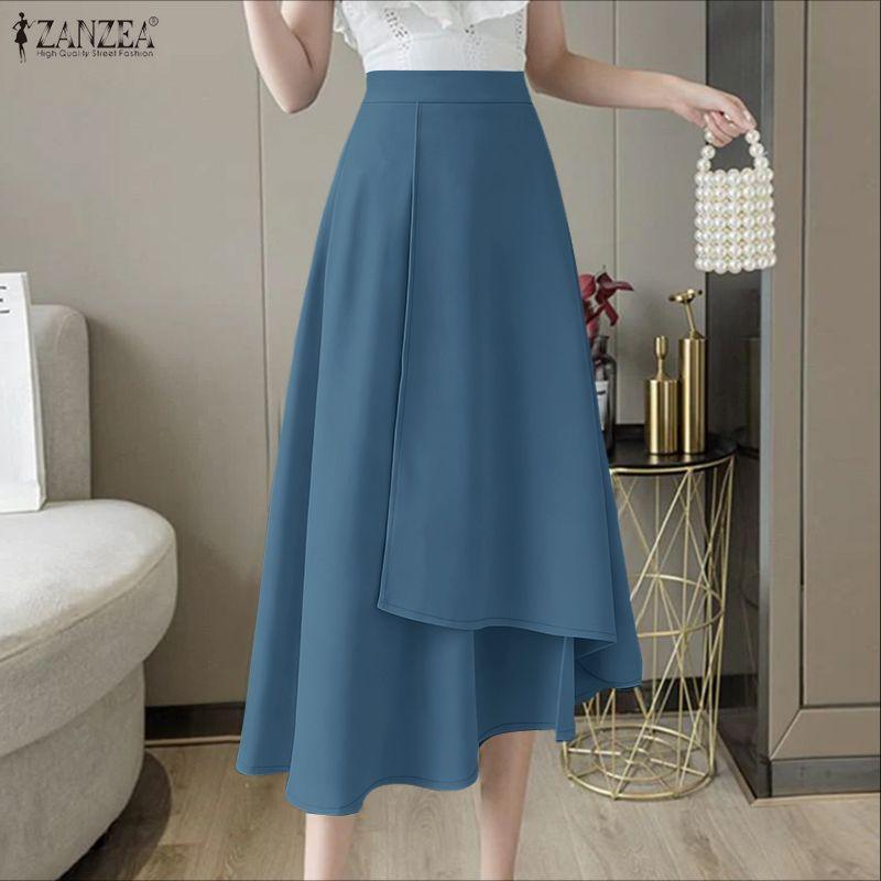 ZANZEA Fuste Midi Largi Casual pentru Femei, Culoare Solidă