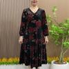 Women's Plus Size Dress Vintage Printed Gold Velvet Dress Loose Crew Neck Long Floral Dress Spring Summer