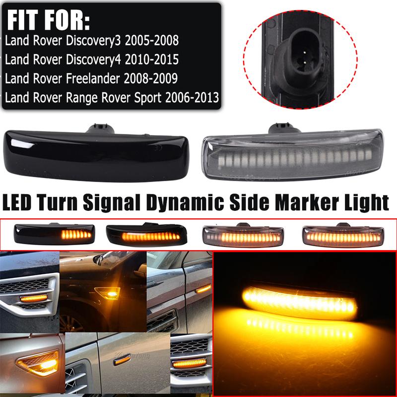 2x Amber Dynamic LED Front Side Marker Turn Signal Light Lamp For Land Rover Range Rover Sport L320 Discovery 3/4 Freelander 2