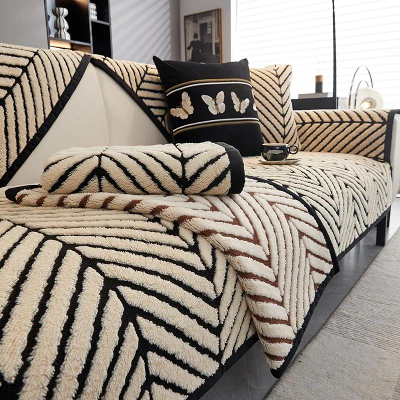 Husa canapea din chenilă, Covor canapea cu dungi herringbone, Anti-alunecare, Pernă canapea îngroșată, Plasă geometrică cu romburi, Husă canapea pentru patru sezoane