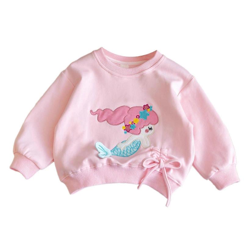Lovely Sea-maid Themed Cotton Blend Sweatshirt For Girls Machine Washable Top Roun Neck For Daily Adventures Pink 90-130