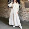 Spring and Autumn New Style Women's Retro Large-sized Lapel Long-sleeved Shirt and Skirt Casual Two-piece Set