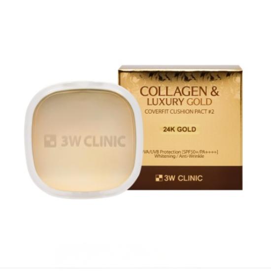3W Clinic Collagen & Luxury Gold Coverfit Cushion Pact is a multifunctional cushion foundation that delivers smooth coverage while helping improve skin appearance. Formulated with collagen and gold, it helps create a radiant, even complexion while maintaining comfortable hydration throughout the day. Its lightweight texture adheres well to the skin for a natural, long-lasting finish.