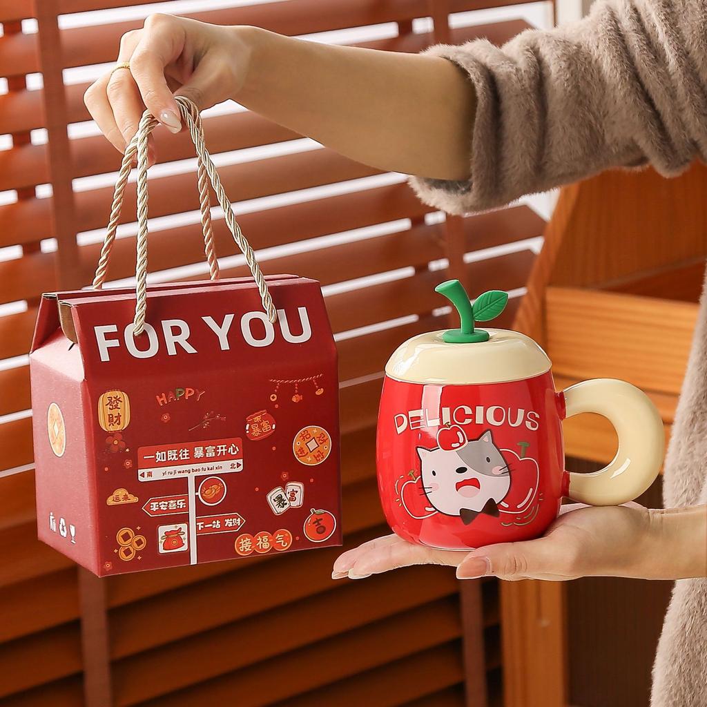 Muse water cup girl birthday gift souvenir ceramic cup cute apple mug with lid gift box
