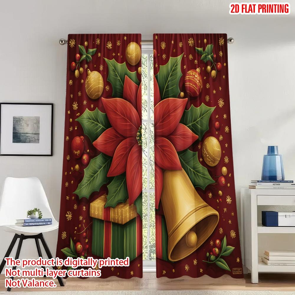 2pcs 2D flat printing Christmas Party Curtains Christmas Poinsettia Holly Ornaments Digital Printed Polyester Drapes Festive