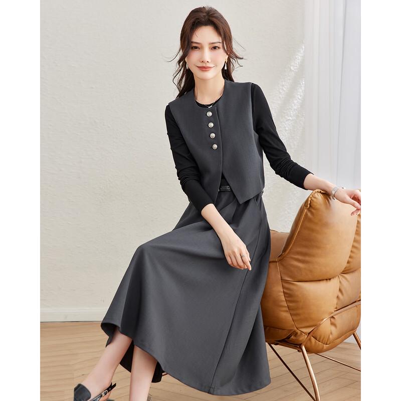 TERRE BLEUE Women's Elegant Vest Spliced Dress Two-Piece Set