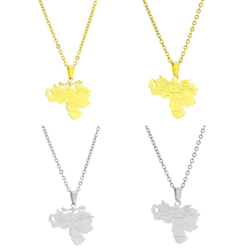 Stainless Steel Outline Venezuela Map Pendant Necklace Heart Map Jewelry