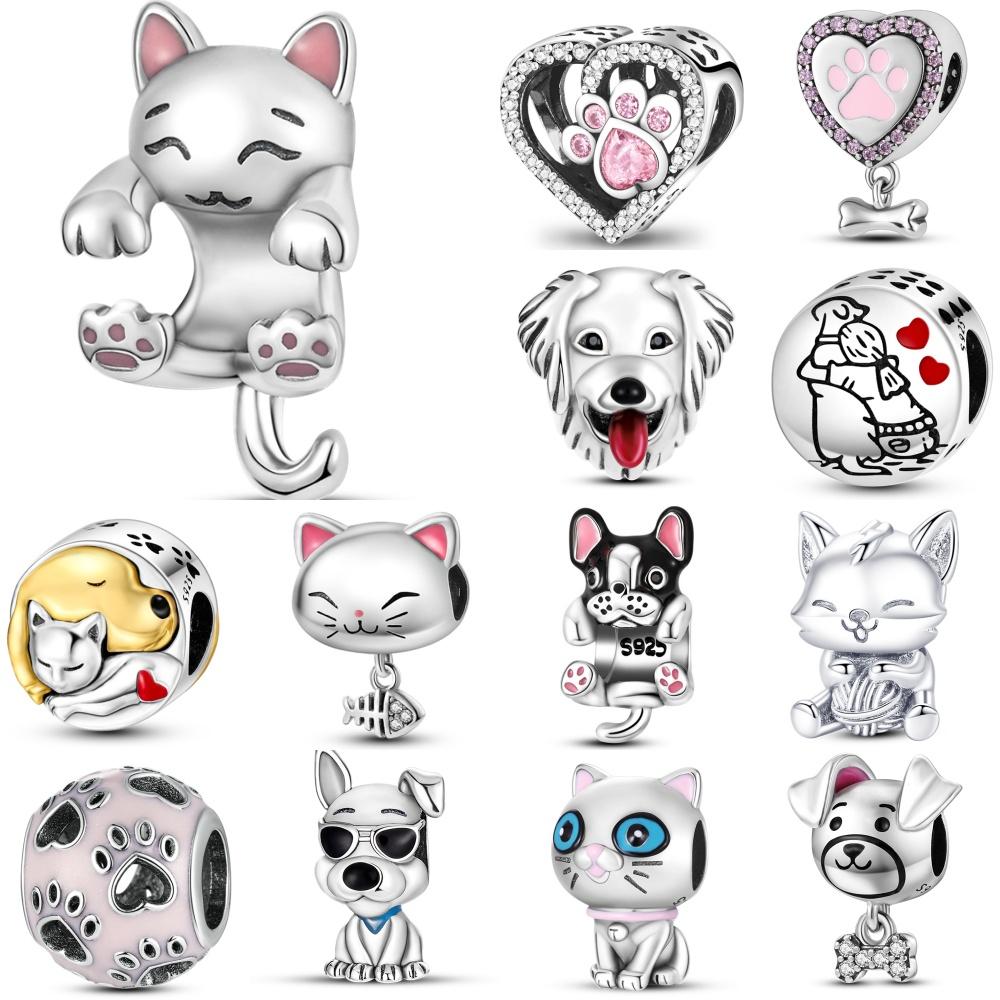 Copper Cute Cat And Dog Paw Print Animal Series Charms Beads Fit Original Fine Braceletsdiy Jewelry Gifts