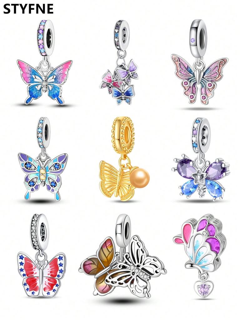 Charms Plata Colorful Butterflies Beads Charm Copper Plated Fit Charms Copperoriginal Bracelet For Jewelry Making Diy Charm