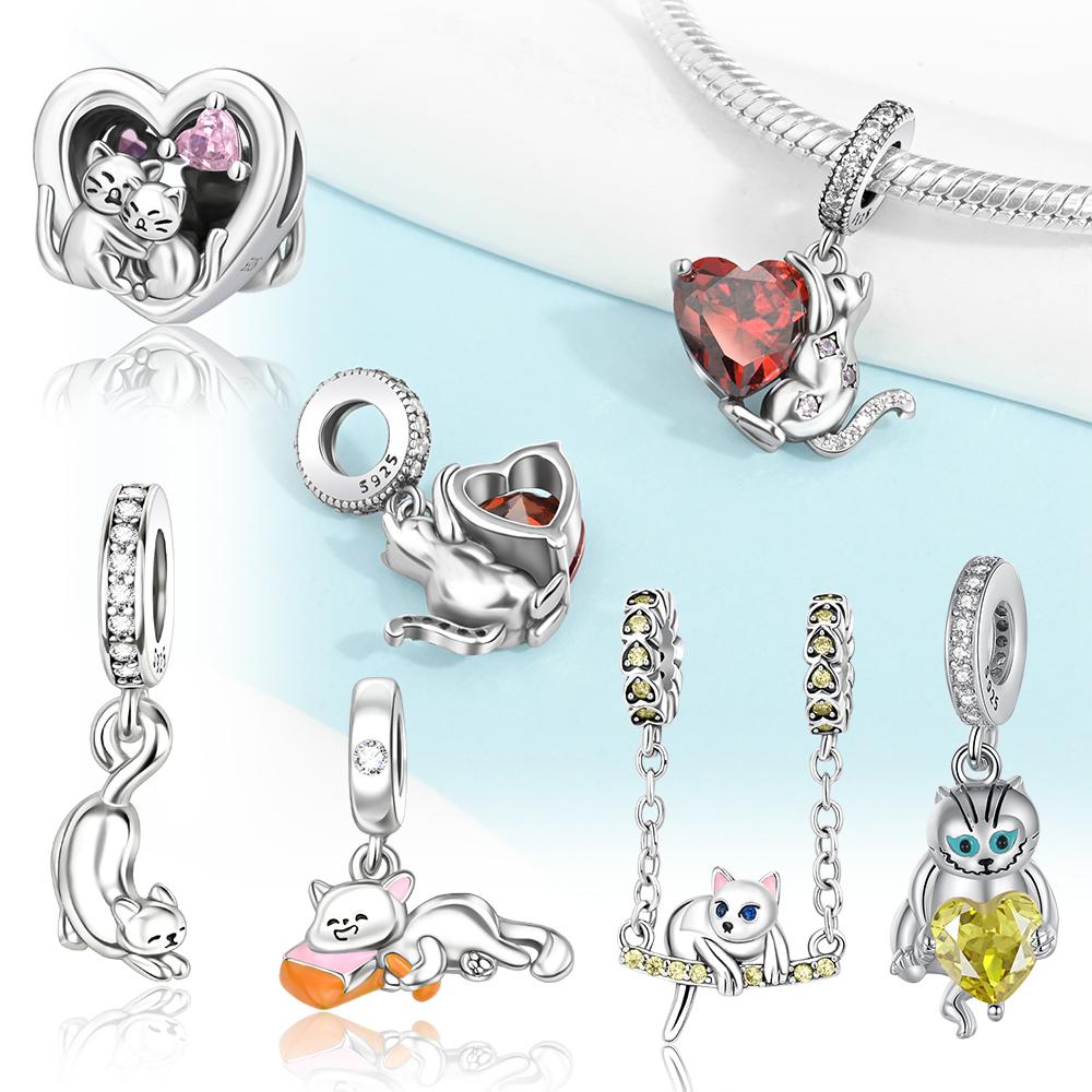 Charms Plata Cat Heart Swing Mothers Day Gift Copper Plated For Charms Copper Plated Original Bracelet For Jewelry Making