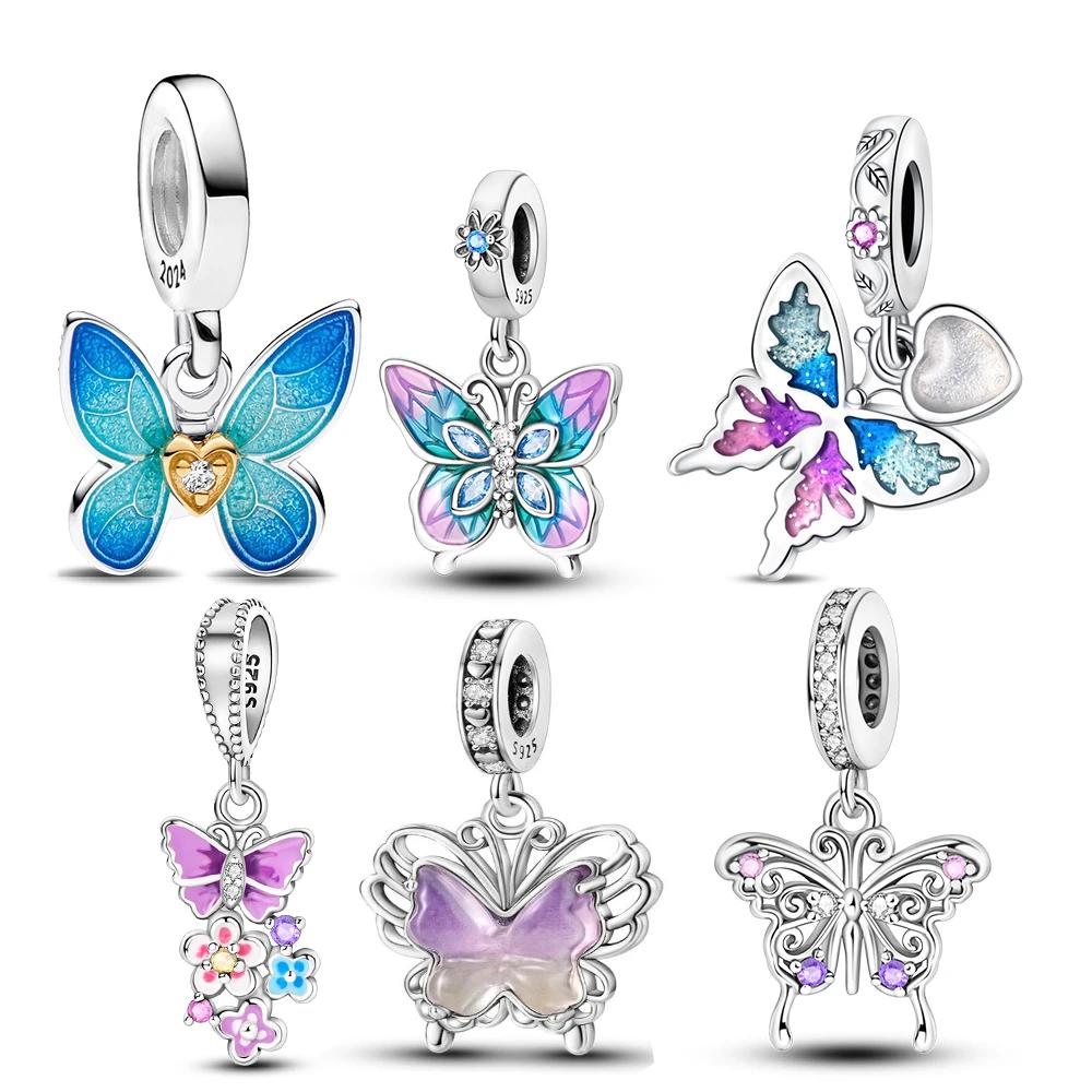 Copper Spring Butterfly Series Blue Dream Butterfly Fit Original Bracelet Women'S Charms For Jewelry Making