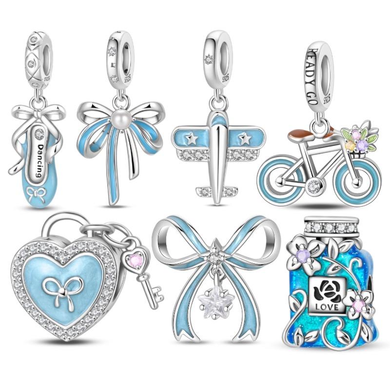 Stering Copperoriginal Blue Bow Perfume Heart Charm Dancing Shoes Bead Fit Original 3Mm Bracelet Diy For Women Fine Jewelry