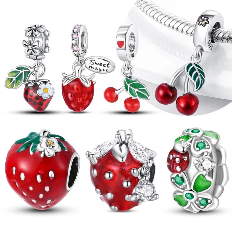 Newstering Copper Cherry Strawberry Fruit Series Charms Beads Fit 3Mm Original Bracelets Diy Birthday Jewelry Gifts