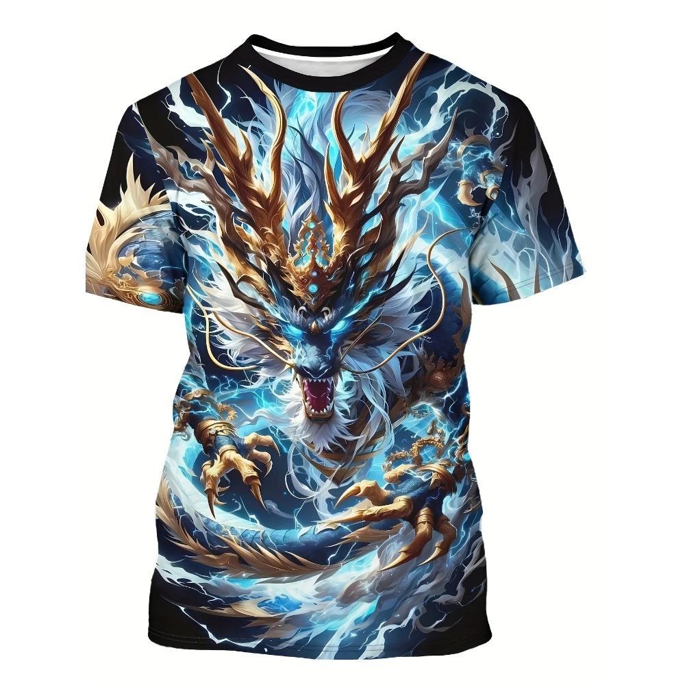 Men's 3D Thunder Dragon Print Crew Neck Short Sleeve T-Shirt Breathable Stretch Fashion T-Shirt Outdoor Casual Party T-Shirt