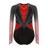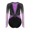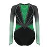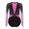 Costum de Gimnastică și Dans pentru Fete cu Mâneci Lungi din Plasă, Decolteu la Spate, Strălucitor cu Strass-uri, Leotard Color-Block