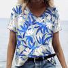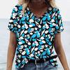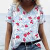 Summer Women Floral Print T-shirt Fashion Tops Tees Female Daily Casual V-Neck Short Sleeve Clothing Ladies Stylish Streetwear