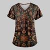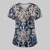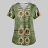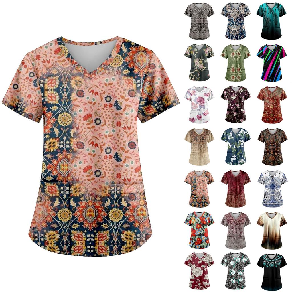 Women's Fashion Printed Work Uniform With Pocket T-Shirt Short Sleeve Top
