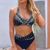 Fashion Women's Sexy Printed Neck Strap Backless Beachwear Bikini Swimsuit Split Swimsuit