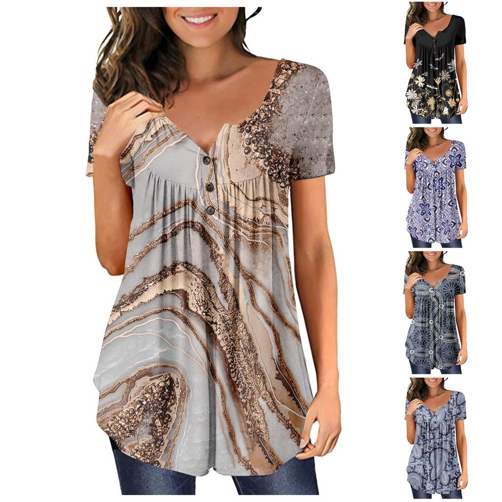 Women's Short-sleeve Loose Tops Casual Plus Size Tunic Button Tops
