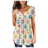 Women's Easter Short Sleeve Tops Loose Tops Casual Oversized Tops Pleated Tops Button Tie Tops Women