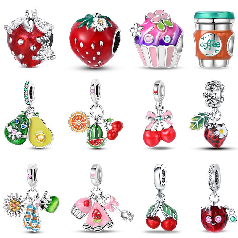 Copper Change Color Strawberry Cherry Avocado Fruit Series Charms Beads Fororiginal Bracelets Diy Birthday Jewelry Gift