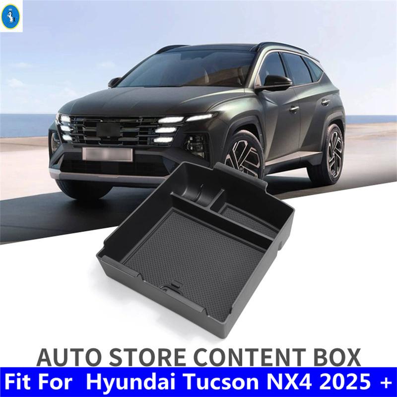 PVC + ABS Car Armrest Box Storage Central Control Container Cover Trim Fit For Hyundai Tucson NX4 2025 2026 Accessories