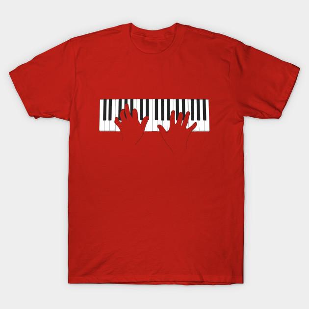 Men Black Print T-shirt Piano Hands No-Cut Transfer Paper Print Cotton Tshirt