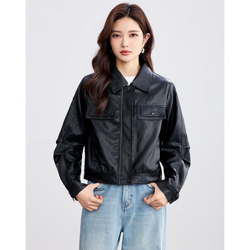 TERRE BLEUE Women's Short PU Leather Jacket