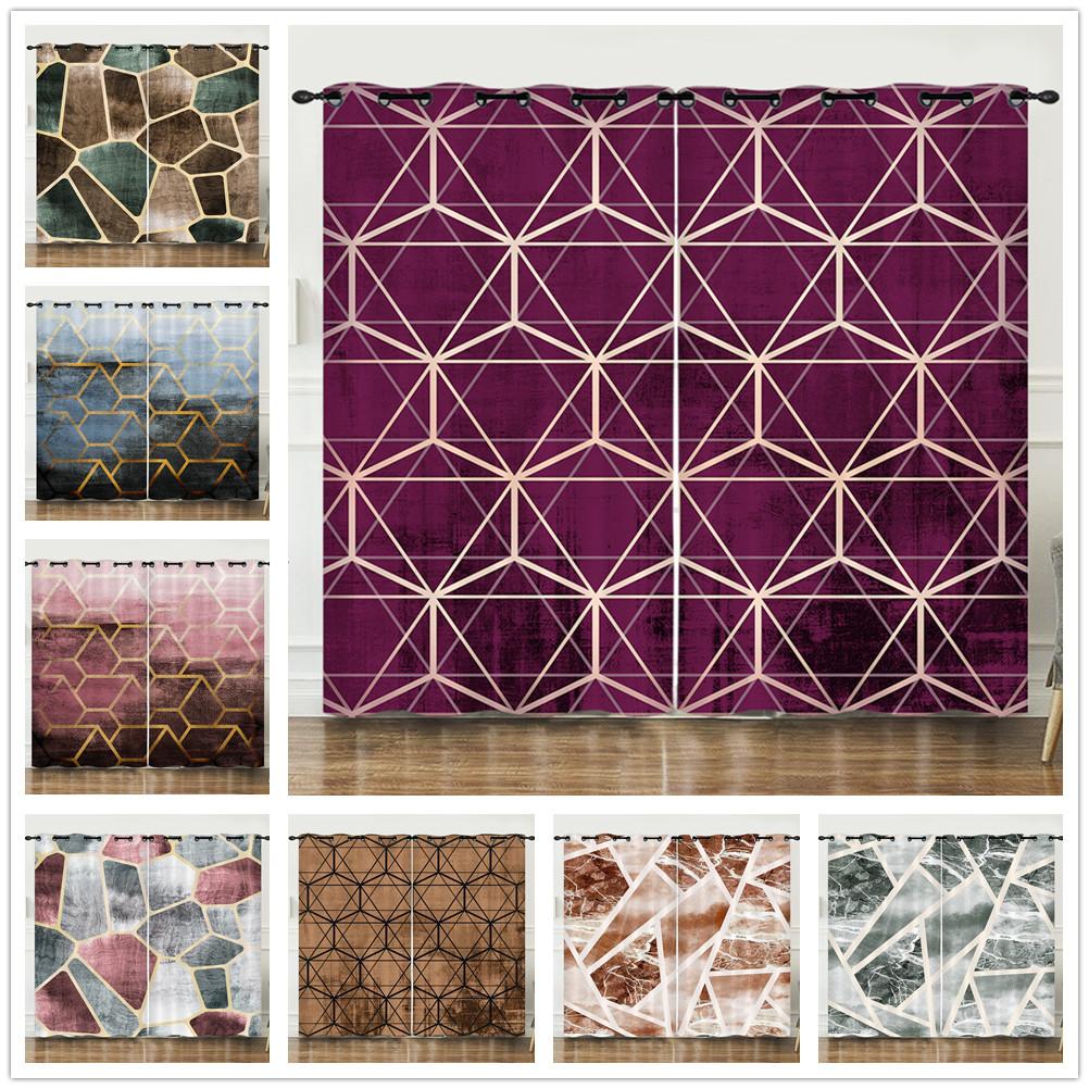 Curtain Texture Geometric 3D Digital Printing Blackout Curtain Bedroom Punching