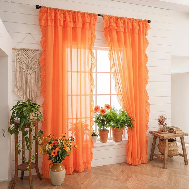 Perdea simplă, de culoare solidă, cu vânt finit, Perdea Dream, cu volane și margine de frunze, Transparentă, subțire, Plisă de fereastră