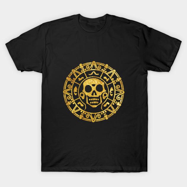 Men Black Print T-shirt Gold Cortes Treasure No-Cut Transfer Paper Print Cotton Tshirt