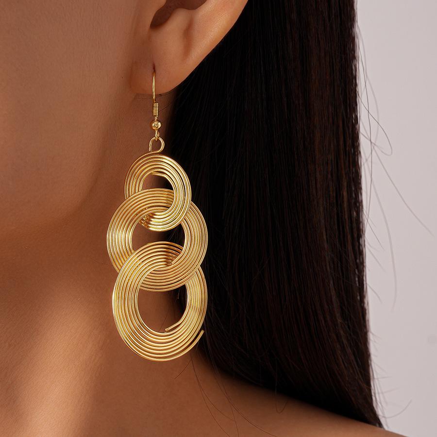 Hollow Geometric Round Wrapped Tassel Ear Hook Unique High-end Earrings